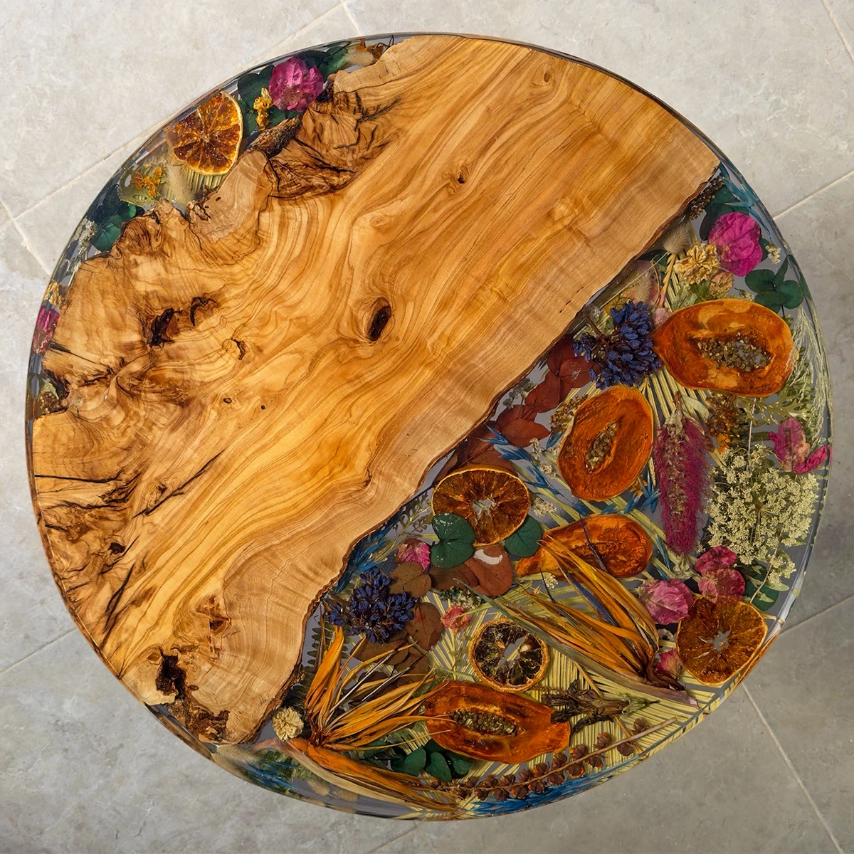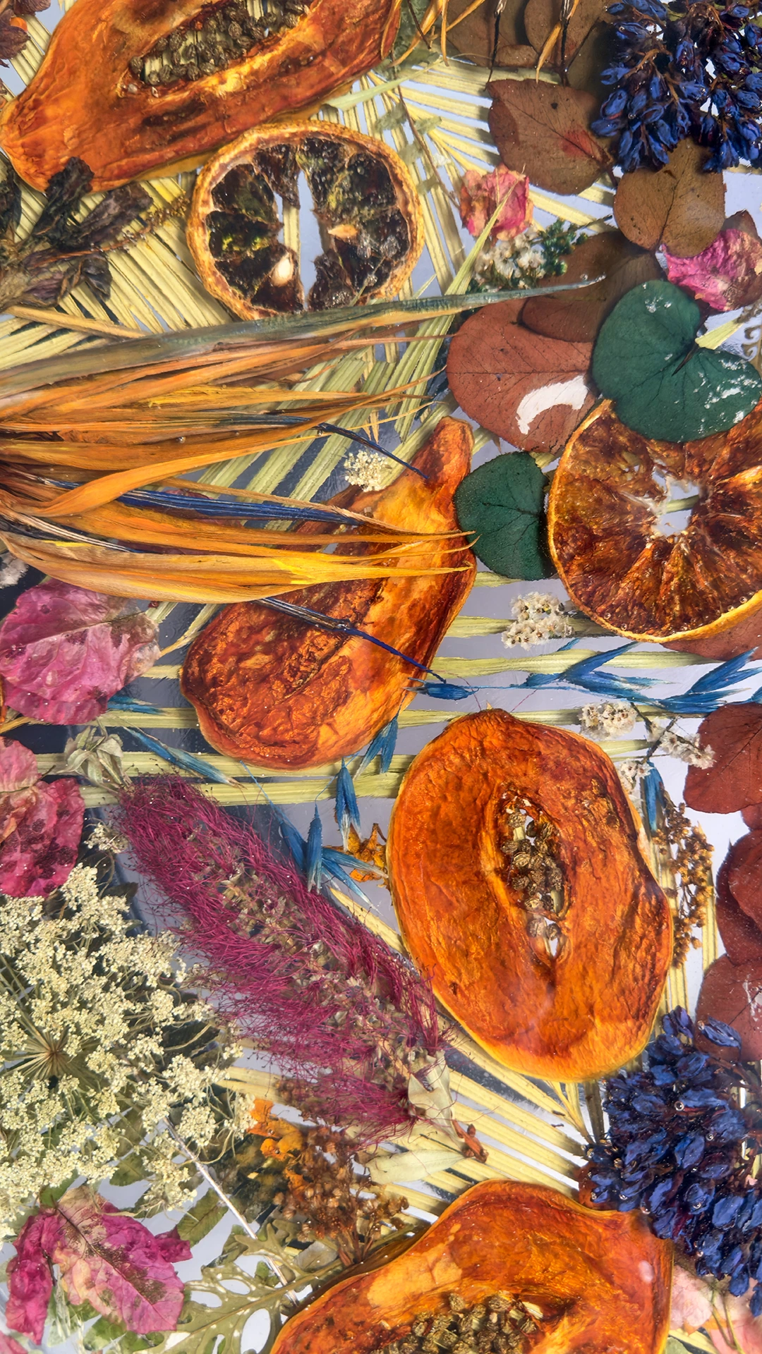 - Inclusión artesanal de flores y frutas secas reales
